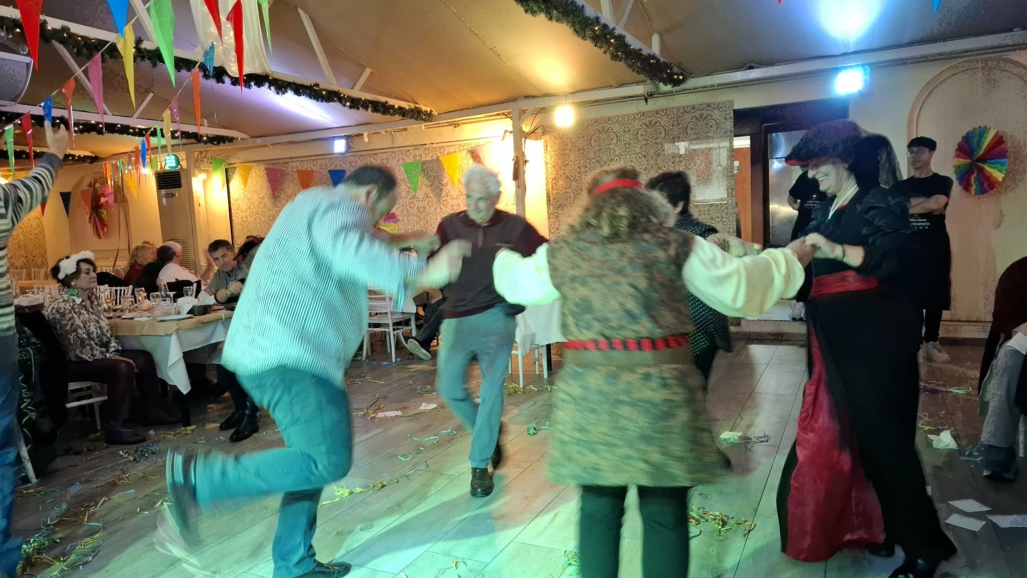 Ο χώρος είχε διαμορφωθεί ζεστά και γιορτινά, με μουσική που ξεσήκωνε από την πρώτη στιγμή. Πολύχρωμες στολές, ευφάνταστες μεταμφιέσεις και αστείρευτο κέφι συνέθεσαν ένα σκηνικό πραγματικής αποκριάτικης μαγείας.