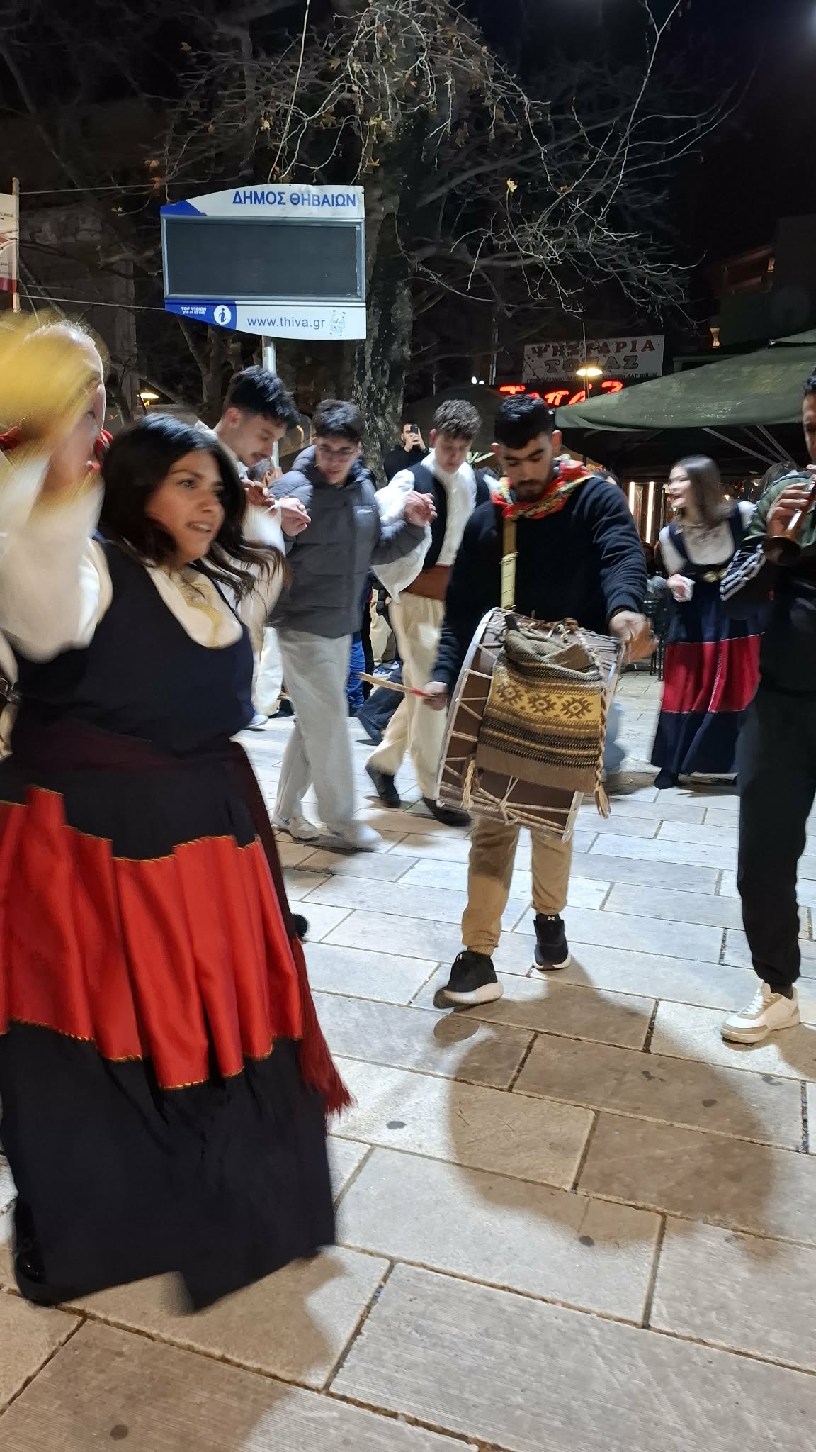 Το πρωί της Καθαράς Δευτέρας μεταβήκαμε με πούλμαν στην περιοχή της Αγία Τριάδας Θήβας, όπου παρακολουθήσαμε τα αρραβωνιάσματα, τους χορούς και τη γιορτινή ατμόσφαιρα που διοργάνωσε ο σύλλογος του Βλάχικου Γάμου. Τα κεράσματα με σαρακοστιανά εδέσματα συμπλήρωσαν ιδανικά την εμπειρία, δίνοντας γεύση παράδοσης στη μέρα.